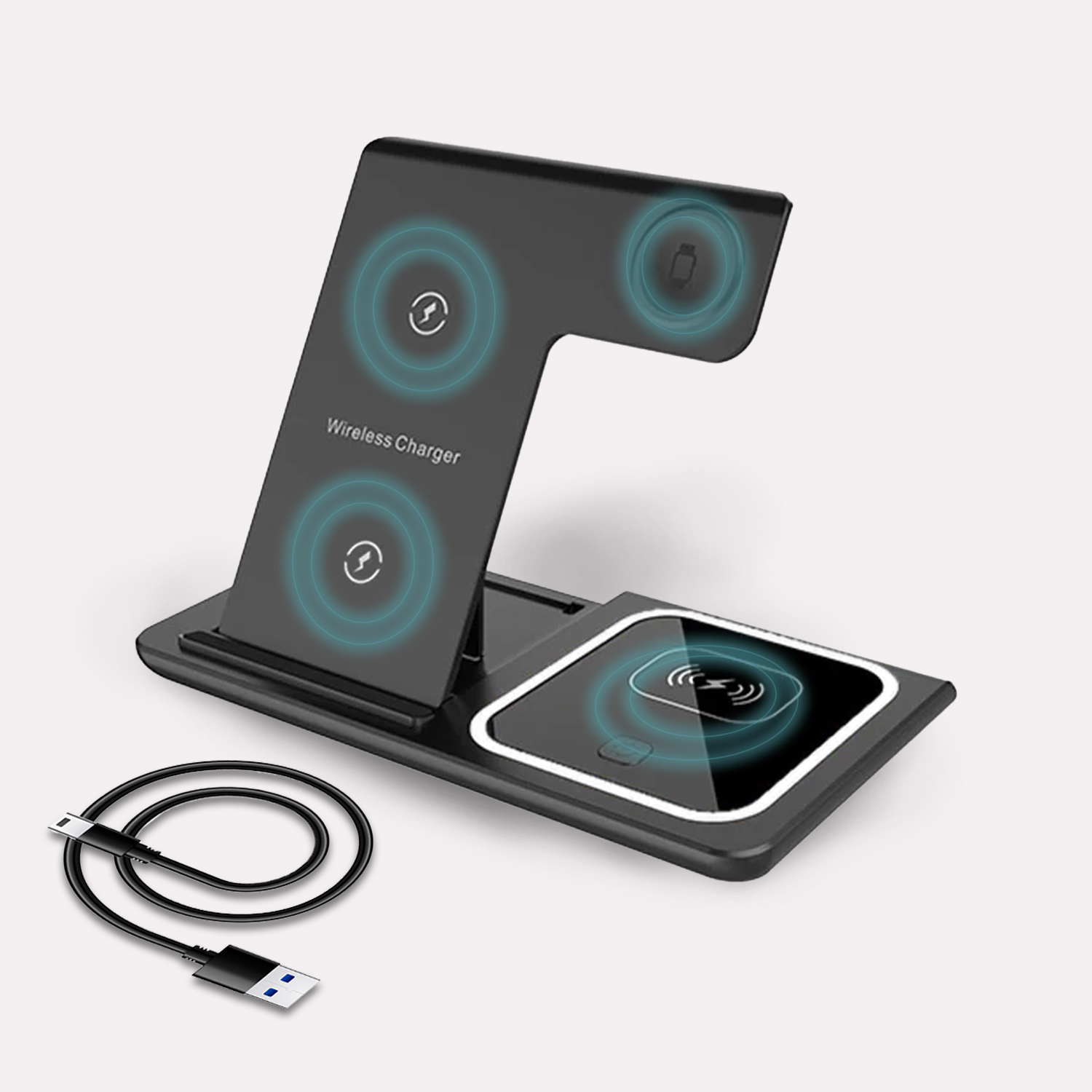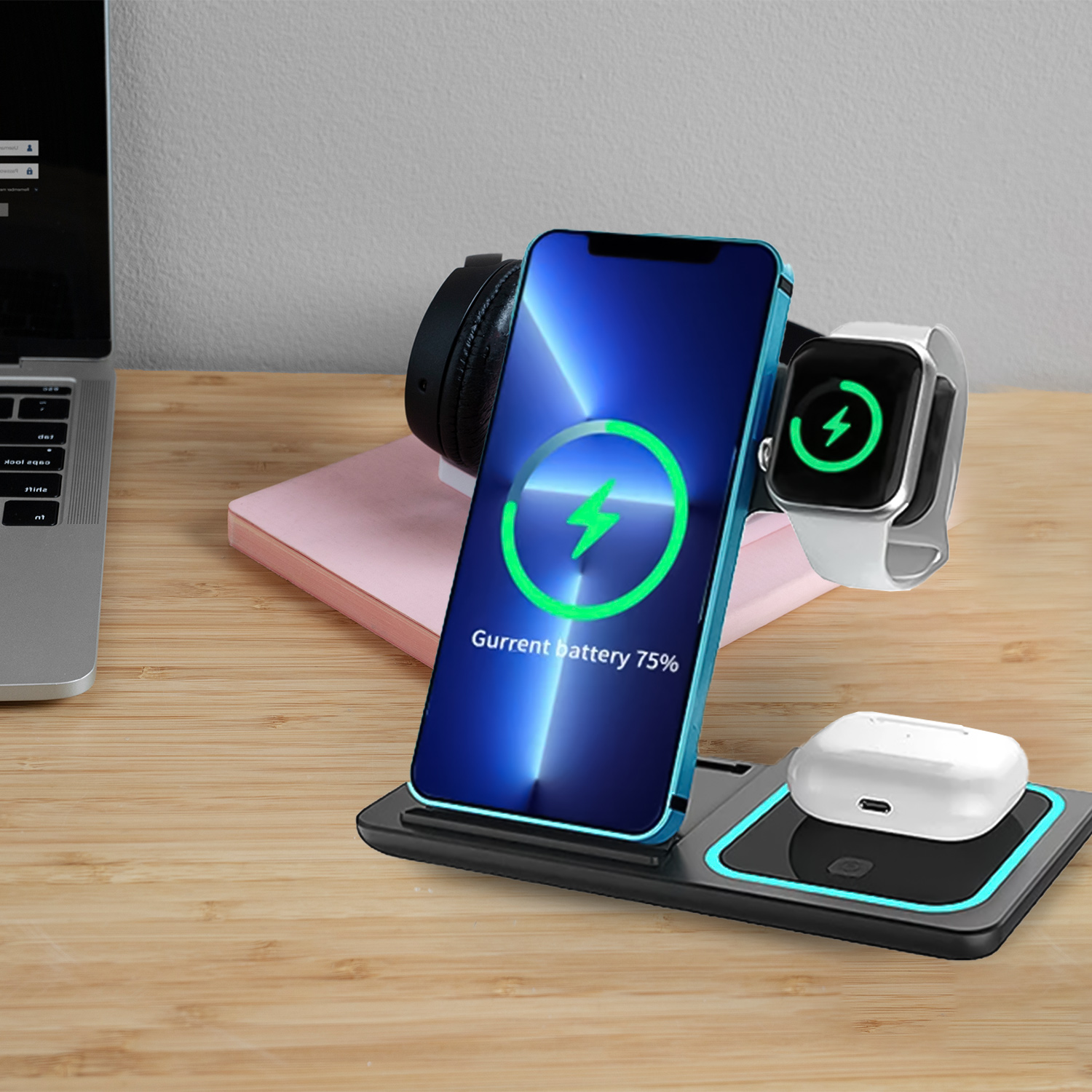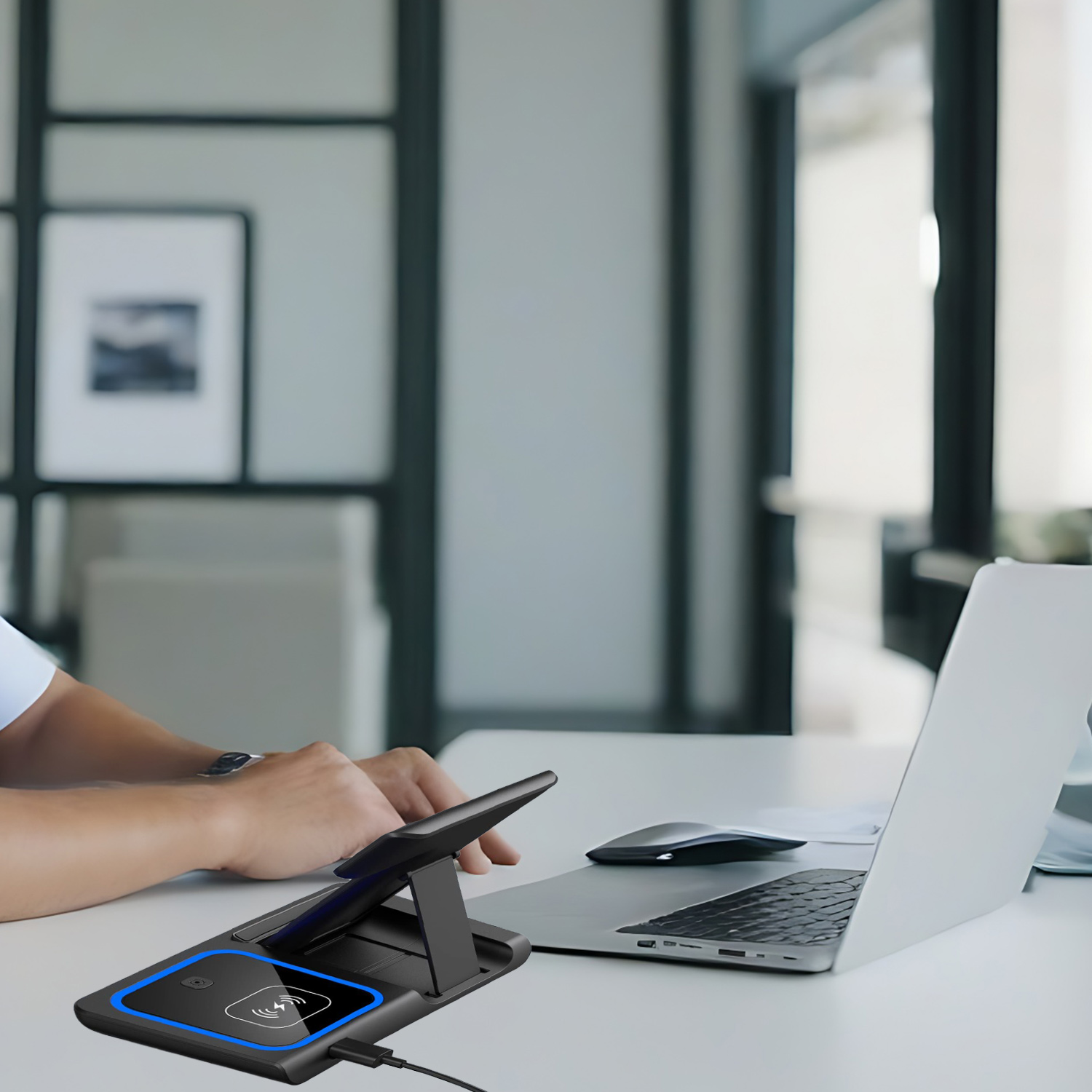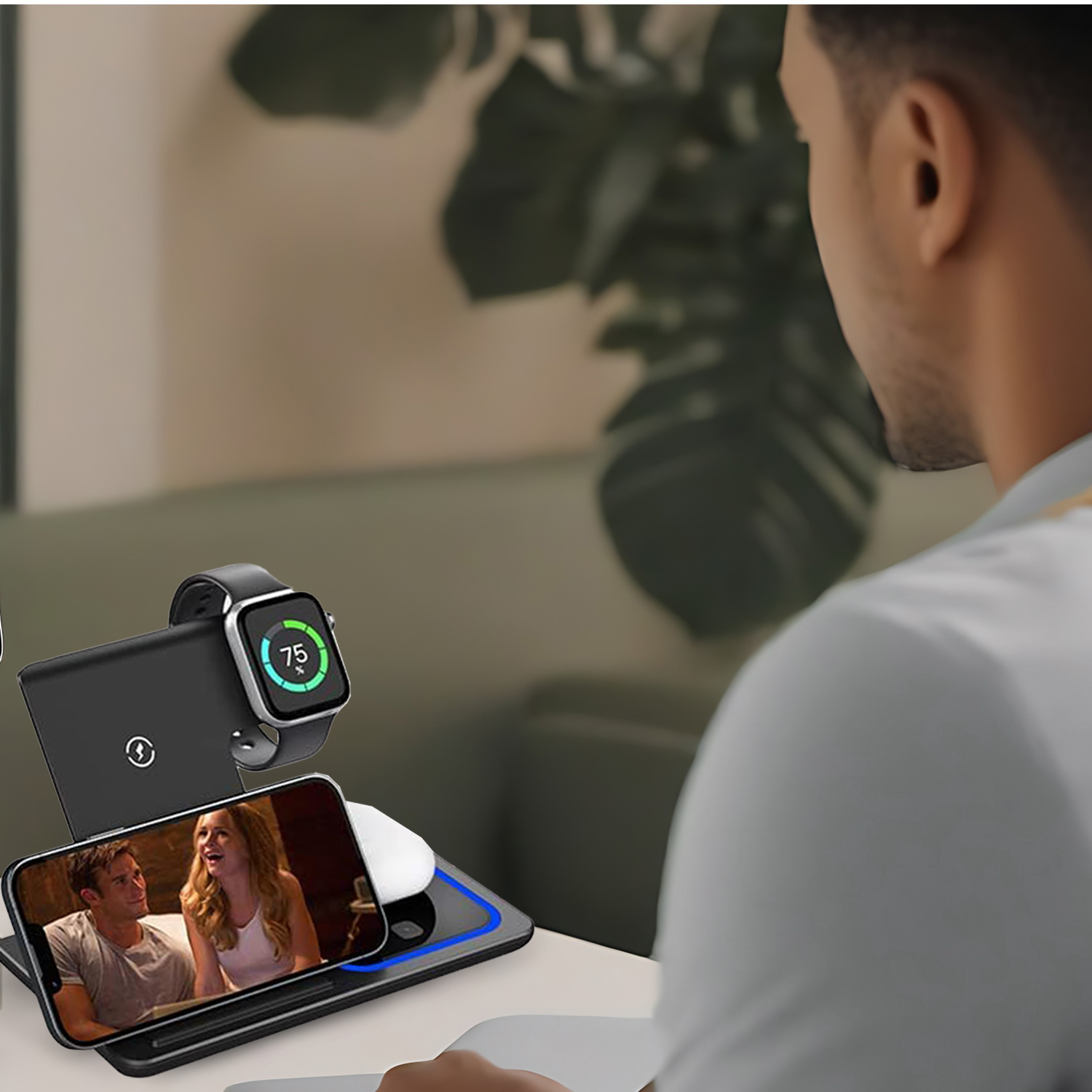 - Multi-Device Opladning: Med en 3 i 1 trådløs oplader kan du oplade flere enheder samtidigt, hvilket sparer tid og reducerer behovet for flere opladningsenheder.