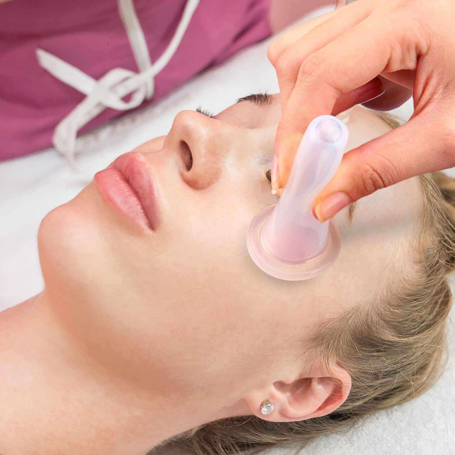 - Gentle Suction: Placer kopperne på huden, og skab et let vakuum. Bevæg dem forsigtigt over ansigtet i anbefalede mønstre.