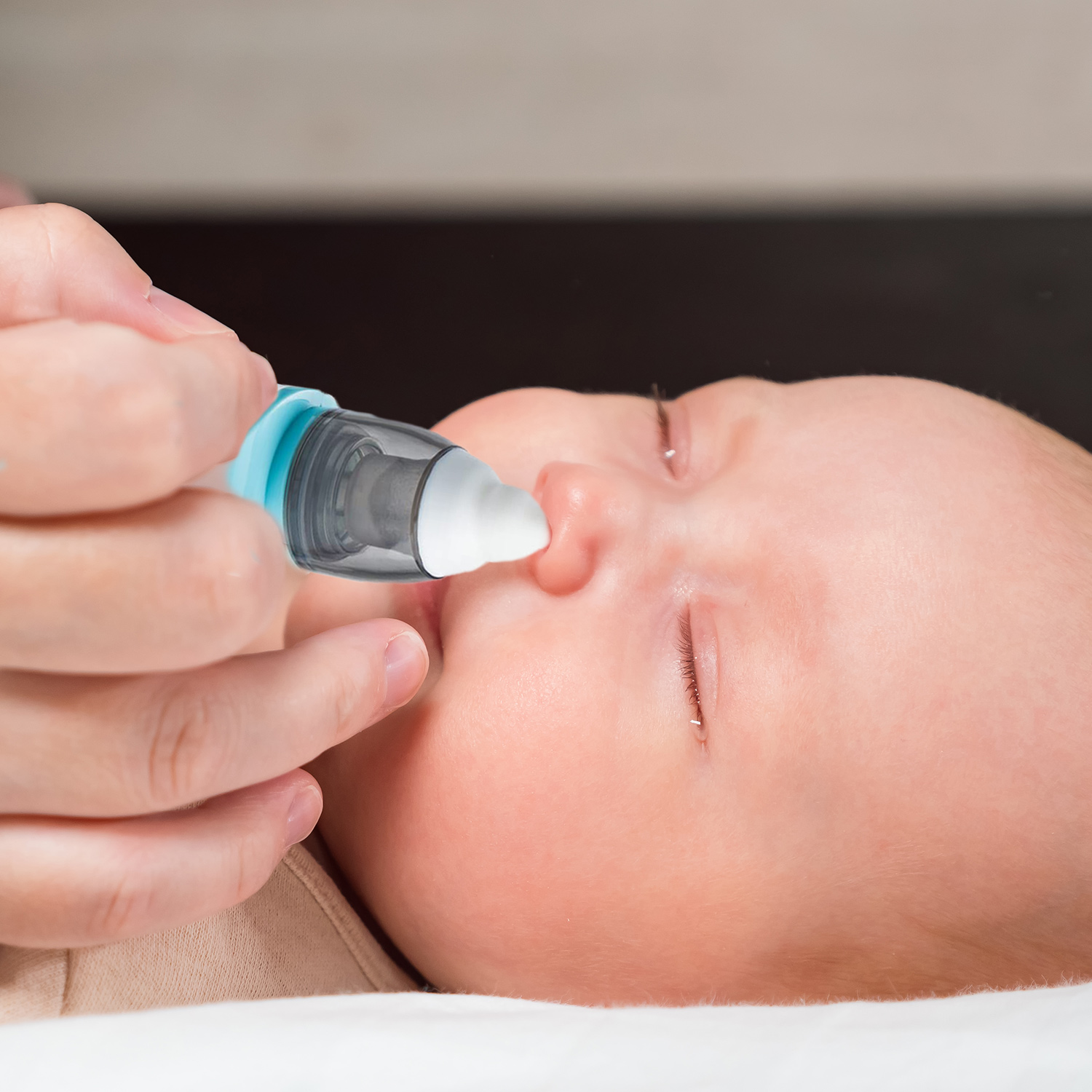 - Aktivér sugefunktionen, og lad næsesugeren fjerne sekretet.