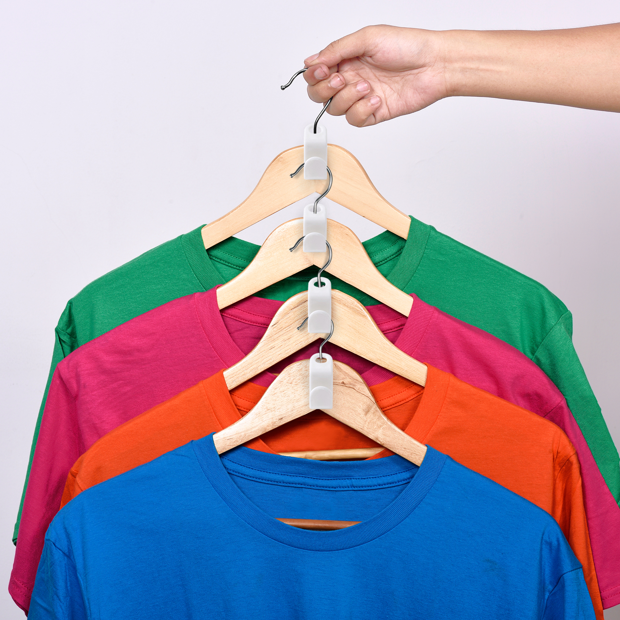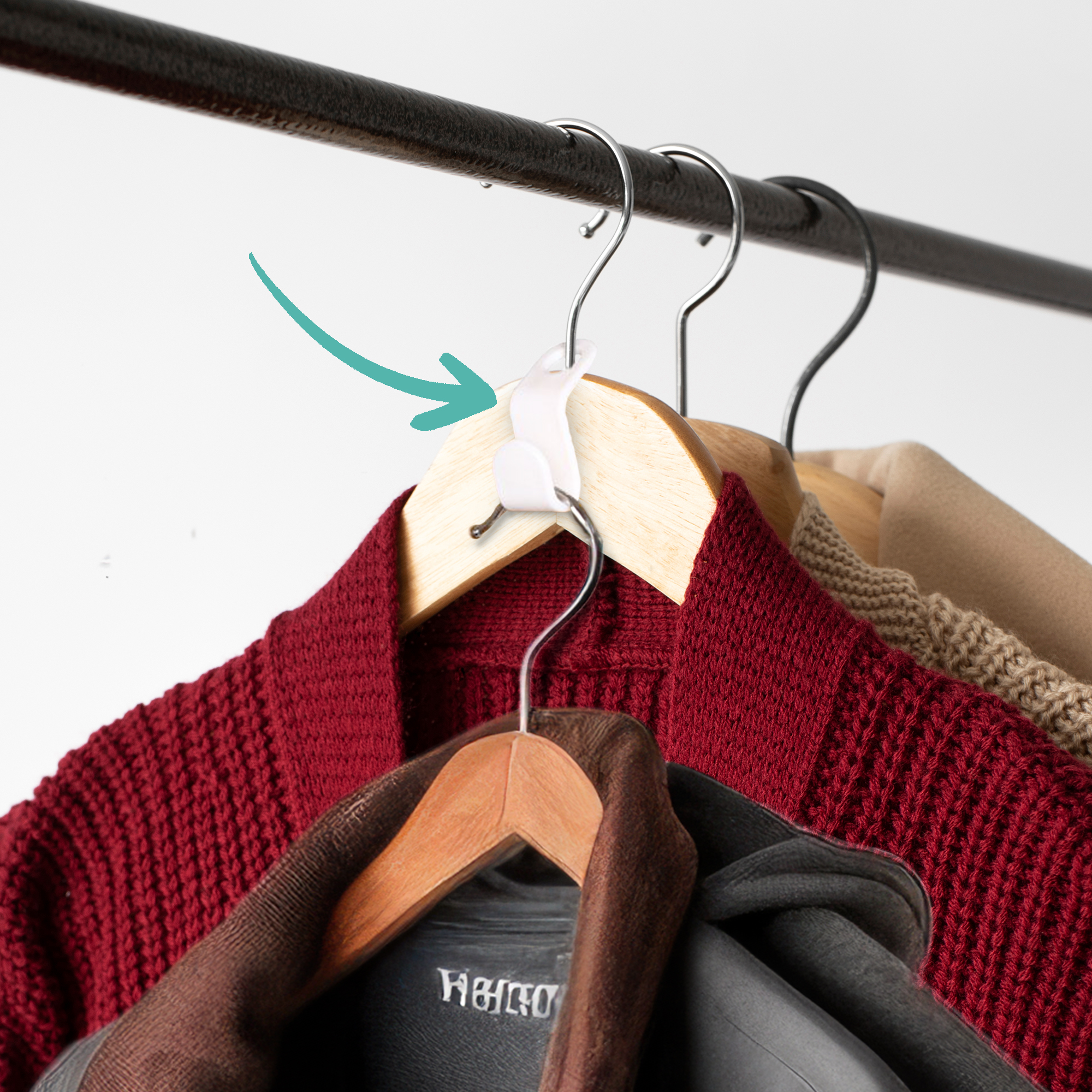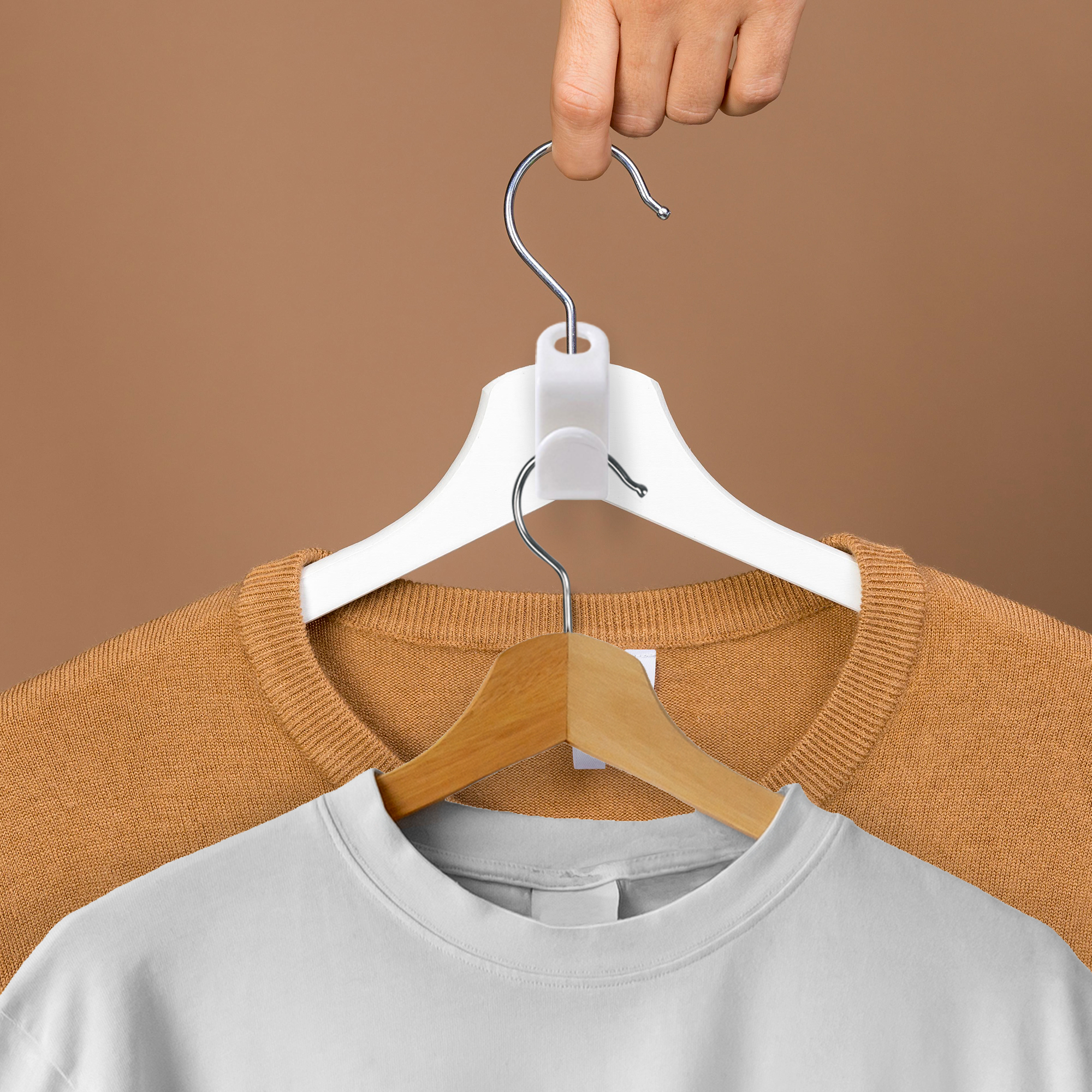Med en krog til bøjler kan du hænge endnu en bøjle på samme sted som den første, hvilket betyder, at du kan fordoble din ophængskapacitet. Sæt simpelthen krogen på den ene bøjle, og du har en praktisk holder, som gør det muligt at hænge endnu en bøjle på samme sted. Det betyder, at du kan have dobbelt så mange tøjstykker på en enkelt bøjle og samtidig have et organiseret og overskueligt garderobeskab.
