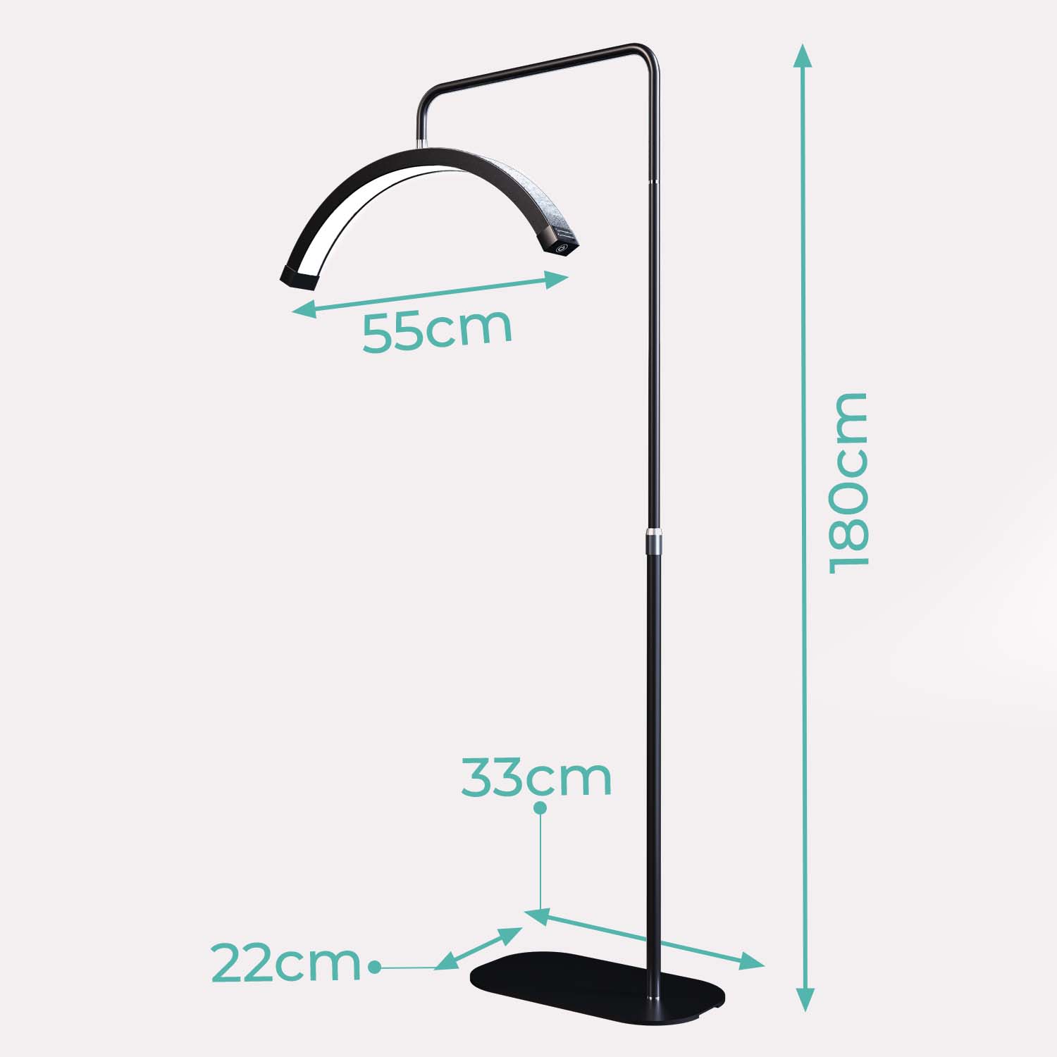 Oplev den perfekte kombination af stilfuldt design og funktionalitet med vores Moon Light. Denne moderne gulvlampe er ideel til professionelle, der arbejder med skønhed, neglebehandlinger eller andre præcisionsopgaver. Med dens buede LED-lys og justerbare højde er Moon Light designet til at give den mest optimale belysning, som du har brug for.