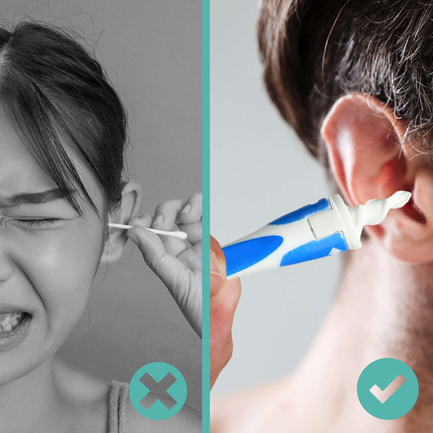 - Effektiv: Den roterende bevægelse sikrer, at ørevoksen fjernes effektivt og helt uden at efterlade rester.
