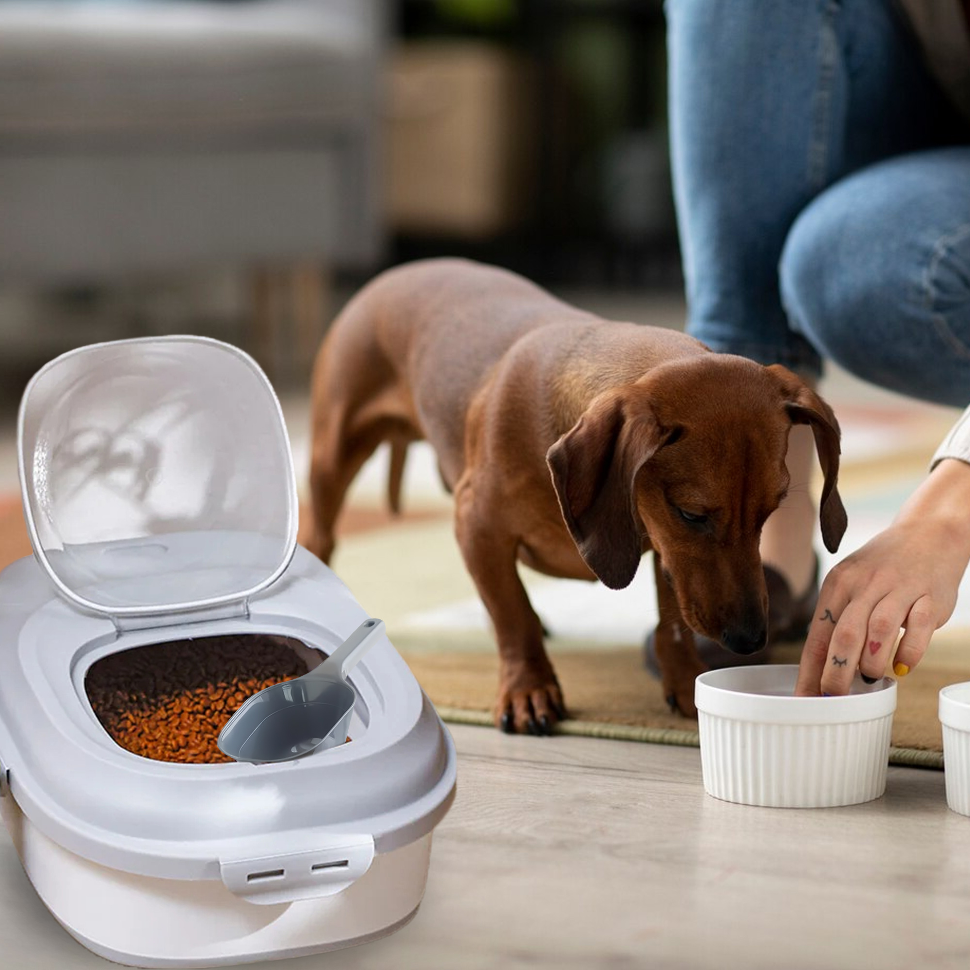 - Kapacitet: Plads til 15 kg tørfoder.