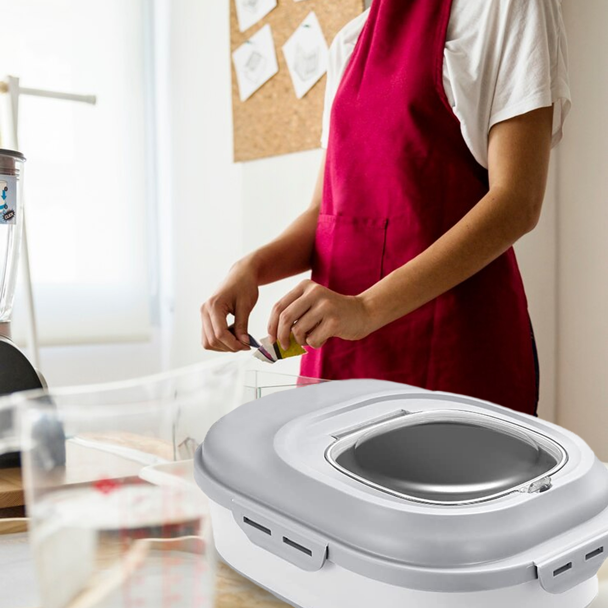 Sørg for at lukke låget ordentligt efter hver brug og opbevar beholderen på et tørt og køligt sted.