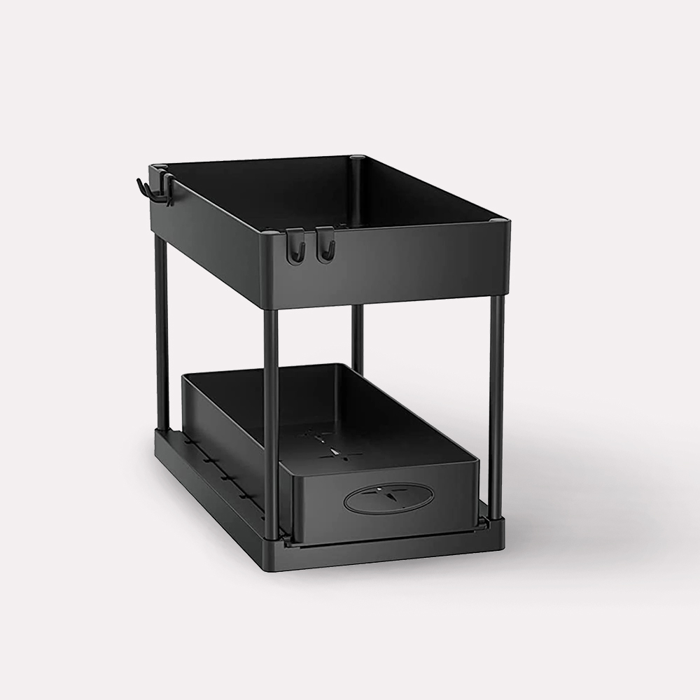 - 1 Hylde med Smart Udtræk Funktion: Dobbeltlagret design sikrer maksimal udnyttelse af pladsen, mens den smarte udtræk funktion gør det nemt at få adgang til og organisere indholdet.