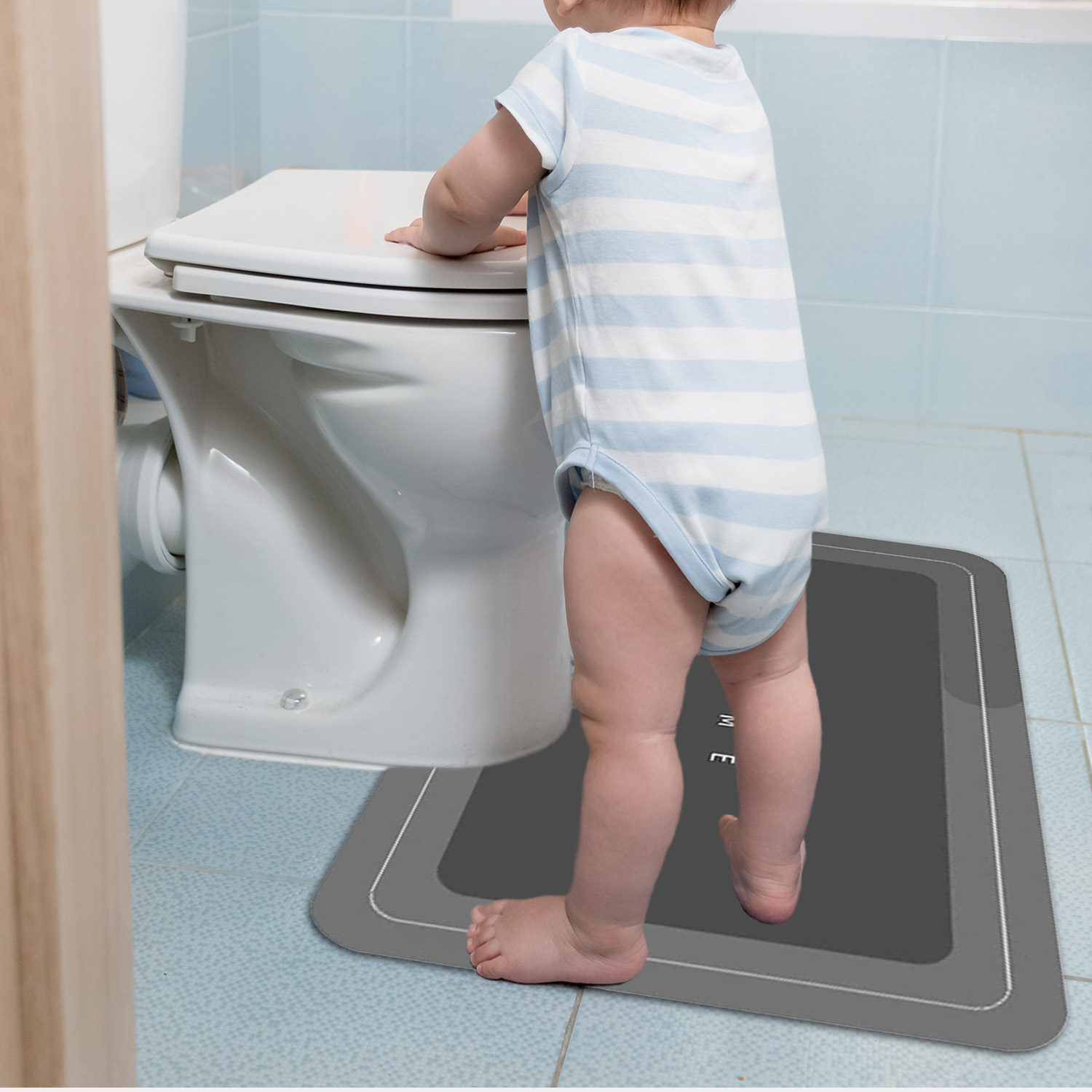 Den skridsikre bund sikrer, at måtten forbliver på plads, selv på et vådt og glat gulv. Og den ekstra absorberende overflade giver dig en blød og behagelig oplevelse, mens du står på den.
